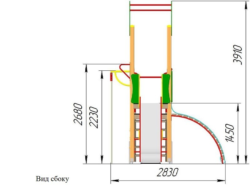 Материалы: Толстостенная труба, клееный брус, влагостойкая фанера.Все металлические элементы изготавливаются из круглых труб, с применением горячекатаного листа. Весь применяемый металлопрокат соответствует ГОСТ 10705-80, ГОСТ 1577-93. Сварные швы конструкций из металла гладкие (ГОСТ Р 52169-2012 п.4.3.10). Все металлические элементы окрашиваются порошковой краской ПК "АМIKA"П-ПЛ-1321 гладкая глянцевая, соответствующая требованиям санитарных норм и экологической безопасности. Для более качественного прокраса все металлические элементы проходят двойной цикл покраски.Все деревянные элементы изготавливаются из хвойной доски влажностью 7-10%, подвергаемой склейке по длине и ширине заготовки с применением клеев зарубежных производителей; изгибы, радиусы и скругленные кромки тщательно отшлифованы и обработаны краской для закрытия торцов JRM (ГОСТ Р 52169-2003 п.4.3.11). Все деревянные элементы проходят окраску в три слоя: первый слой — грунтование заготовки с последующим шлифованием поверхности, второй слой — покраска вододисперсионной краской с последующим шлифованием поверхности, третий слой — финишная покраска. Все деревянные элементы окрашиваются колерованным лаком BRAVA ACRIL 43 (ВД-АК-1043) полу глянцевым, соответствующий требованиям санитарных норм и экологической безопасности.Все деревянные элементы изготавливаются из хвойной доски влажностью 7-10%, подвергаемой склейке по длине и ширине заготовки с применением клеев зарубежных производителей; изгибы, радиусы и скругленные кромки тщательно отшлифованы и обработаны краской для закрытия торцов JRM (ГОСТ Р 52169-2003 п.4.3.11). Все деревянные элементы проходят окраску в три слоя: первый слой — грунтование заготовки с последующим шлифованием поверхности, второй слой — покраска вододисперсионной краской с последующим шлифованием поверхности, третий слой — финишная покраска. Все деревянные элементы окрашиваются колерованным лаком BRAVA ACRIL 43 (ВД-АК-1043) полу глянцевым, соответствующий требованиям санитарных норм и экологической безопасности.Крепеж оцинкован.Выступающие части резьбовых соединений закрыты пластиковыми заглушками (ГОСТ Р 52169-2012 п. 4.3.9).Крепление элементов оборудования исключает возможность их демонтажа без применения инструментов (ГОСТ Р 52169-2012 п. 4.3.13).Изделие сопровождается: а) техническим паспортом завода-изготовителя (ГОСТ Р 52301-2004 п. 5), в котором указано предназначение, номер изделия, правила безопасной эксплуатации и схема сборки.б) комплектом крепежа для сборки и монтажа.Сборочно-монтажные работы выполняются с соблюдением требований национальных стандартов по установке детского игрового оборудования и согласно схемам монтажа предприятия-изготовителя.