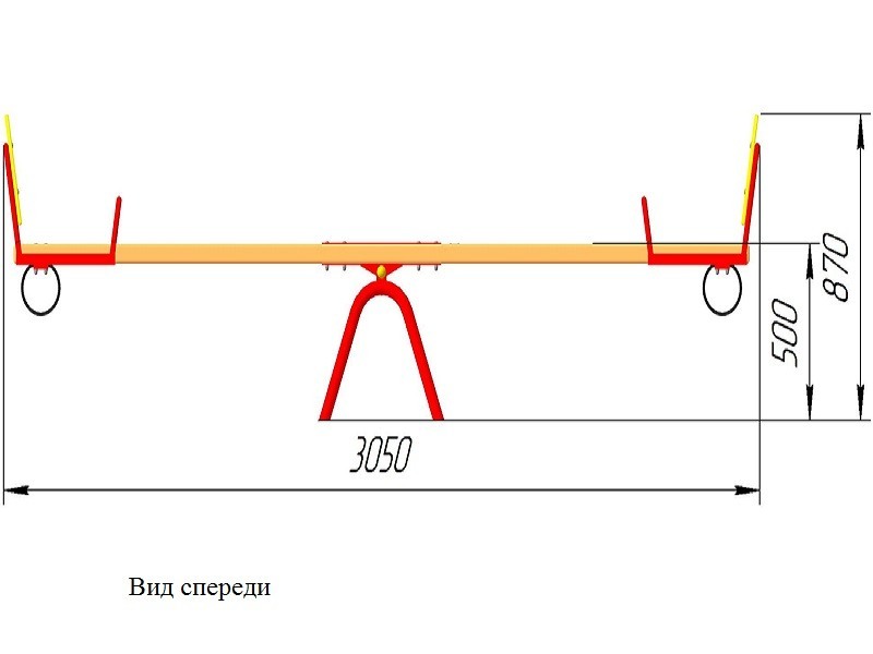 Качалка-балансир имеет сборноразборную конструкцию. Качалка включает в себя основание, крутящийся механизм, балансир, два сидения, две спинки и две демпфирующие резины. Качалка устанавливается и бетонируется в грунт. Возраст пользователя от 3 до 12 лет. Основание выполнено из круглой трубы сечением не менее 42мм и листового металла толщиной не менее 8мм. Крутящийся механизм выполнен из горячекатаного круга сечением не менее 40мм, листового металла толщиной не менее 4мм и двух радиально упорных подшипников. Балансир выполнен из хвойной доски влажностью 7-10% сечением не менее 180мм*40мм и влагостойкой фанеры толщиной не менее 15мм. Сидения выполнены из круглой трубы сечением не менее 21мм, равнополочного уголка сечением не менее 32мм*32мм и листового металла толщиной не менее 4мм. Спинки выполнены из влагостойкой фанеры толщиной не менее 24мм. Демпфирующая резина выполнена из резиновой ленты армированной капроновым кордом толщиной не менее 10мм. Все металлические элементы выполнены с применением высокоточного оборудования. Деревянные и фанерные элементы изготавливаются на полуавтоматизированной линии по обработке изделий. Все деревянные элементы изготавливаются из хвойной доски влажностью 7-10%, подвергаемой склейке по длине и ширине заготовки с применением клеев зарубежных производителей; изгибы, радиусы и скругленные кромки тщательно отшлифованы и обработаны краской для закрытия торцов JRM (ГОСТ Р 52169-2012 п.4.3.11). Все деревянные элементы проходят окраску в три слоя: первый слой – грунтование заготовки с последующим шлифованием поверхности, второй слой – покраска вододисперсионной краской с последующим шлифованием поверхности, третий слой – финишная покраска. Все деревянные элементы окрашиваются краской финского производителя TEKNOS, соответствующей требованиям санитарных норм и экологической безопасности. Все металлические элементы изготавливаются из круглых труб, с применением горячекатаного листа. Весь применяемый металлопрокат соответствует ГОСТ 8509-93, ГОСТ 10705-80, ГОСТ 1577-93. Сварные швы конструкций из металла гладкие (ГОСТ Р 52169-2012 п.4.3.10). Все металлические элементы окрашиваются порошковой краской финского производителя TEKNOS, соответствующей требованиям санитарных норм и экологической безопасности. Для более качественного прокраса все металлические элементы проходят двойной цикл покраски. Все фанерные элементы изготовлены из многослойной влагостойкой, склеенной под прессом и соответствующей ГОСТ 30427-96 фанеры; изгибы, радиусы и скругленные кромки тщательно отшлифованы и обработаны краской для закрытия торцов JRM (ГОСТ Р 52169-2012 п.4.3.11). Окраска фанерных элементов происходит в три слоя: первый слой – грунтование заготовки с последующим шлифованием поверхности, второй слой – покраска двухкомпонентной краской с последующим шлифованием поверхности, третий слой – финишная покраска. Все фанерные элементы окрашиваются краской финского производителя TEKNOS, соответствующей требованиям санитарных норм и экологической безопасности.   Крепеж оцинкован. Выступающие части резьбовых соединений закрыты пластиковыми заглушками (ГОСТ Р 52169-2012 п. 4.3.9). Крепление элементов оборудования исключает возможность их демонтажа без применения инструментов (ГОСТ Р 52169-2012 п. 4.3.13). Изделие сопровождается: а) техническим паспортом завода-изготовит