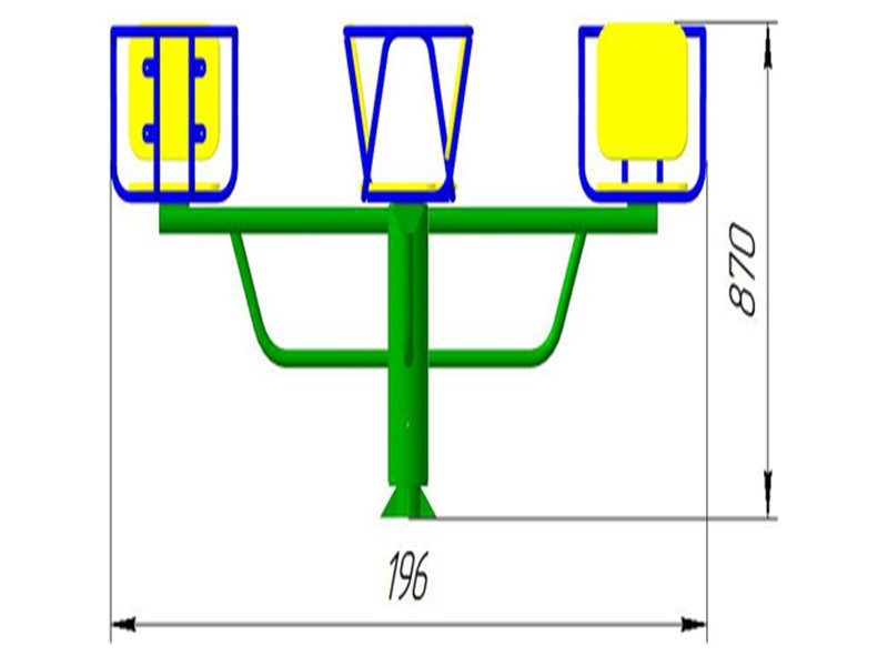 Карусель выполнена как сборноразборная металлическая конструкция с четырьмя сидениями. Карусель устанавливается и бетонируется в грунт при помощи основания для бетонирования. Возраст пользователя от 3 до 12 лет. Крутящийся механизм выполнен на токарном механизме, из горячекатаного круга сечением не менее 80мм, круглой трубы сечением не менее 133мм, листового металла толщиной не менее 8мм. Крутящийся механизм карусели имеет два износостойких радиально упорных подшипника. Каркас под сидения выполнен из круглой трубы сечением не менее 47мм и листового металла толщиной не менее 8мм. Сидения выполнены из круглой трубы сечением не менее 27мм, листового металла толщиной не менее 6мм и влагостойкой фанеры толщиной не менее 15мм. Основание для бетонирования выполнено из равнополочного уголка сечением не менее 25мм*25мм и шпильки диаметром не менее 20мм. Все металлические элементы выполнены с применением высокоточного оборудования. Фанерные элементы изготавливаются на полуавтоматизированной линии по обработке изделий. Все металлические элементы изготавливаются из круглых труб, с применением горячекатаного листа. Весь применяемый металлопрокат соответствует ГОСТ 535-88, ГОСТ 8509-93, ГОСТ 8639-93, ГОСТ 10705-80, ГОСТ 1577-93. Сварные швы конструкций из металла гладкие (ГОСТ Р 52169-2012 п.4.3.10). Все металлические элементы окрашиваются порошковой краской финского производителя TEKNOS, соответствующей требованиям санитарных норм и экологической безопасности. Для более качественного прокраса все металлические элементы проходят двойной цикл покраски. Все фанерные элементы изготовлены из многослойной влагостойкой, склеенной под прессом и соответствующей ГОСТ 30427-96 фанеры; изгибы, радиусы и скругленные кромки тщательно отшлифованы и обработаны краской для закрытия торцов JRM (ГОСТ Р 52169-2012 п.4.3.11). Окраска фанерных элементов происходит в три слоя: первый слой – грунтование заготовки с последующим шлифованием поверхности, второй слой – покраска двухкомпонентной краской с последующим шлифованием поверхности, третий слой – финишная покраска. Все фанерные элементы окрашиваются краской финского производителя TEKNOS, соответствующей требованиям санитарных норм и экологической безопасности. Крепеж оцинкован. Выступающие части резьбовых соединений закрыты пластиковыми заглушками (ГОСТ Р 52169-2012 п. 4.3.9). Крепление элементов оборудования исключает возможность их демонтажа без применения инструментов (ГОСТ Р 52169-2012 п. 4.3.13). Изделие сопровождается: а) техническим паспортом завода-изготовителя (ГОСТ Р 52301-2004 п. 5), в котором указано предназначение, номер изделия, правила безопасной эксплуатации и схема сборки. б) комплектом крепежа для сборки и монтажа. Сборочно-монтажные работы выполняются с соблюдением требований национальных стандартов по установке детского игрового оборудования и согласно схемам монтажа предприятия-изготовителя.